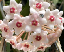 Lovely round, thick and shiny leaves in dark green. It has a cluster of white to pink star-like flowers that are heavily scented and produce a sugary nectar.
