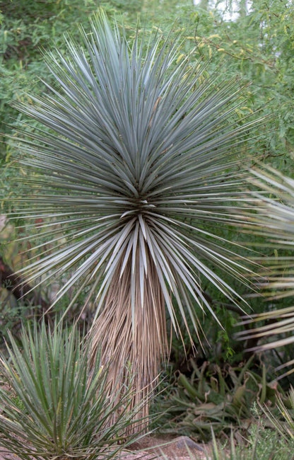 Yucca rigida is not often seen in NZ, despite its striking appearance and ability to tolerate a wide range of conditions. It is a robust, cold-tolerant yucca, native to Mexico, forming a single trunk topped with beautiful light blue, stiff, sharp leaves with a yellow margin. Think of a light blue version of NZ's Giant Spaniard but which eventually forms a trunk.