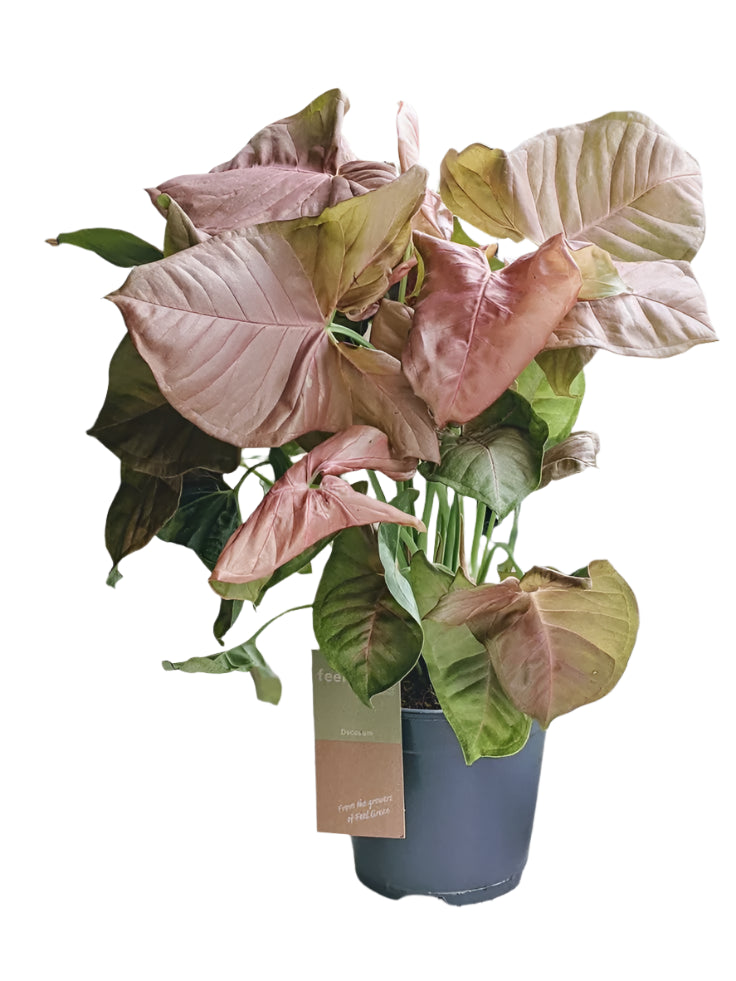 The Syngonium red heart really delivers on that lush soft pink crumpled leaf look. Who knew green and pink goes so well together!
