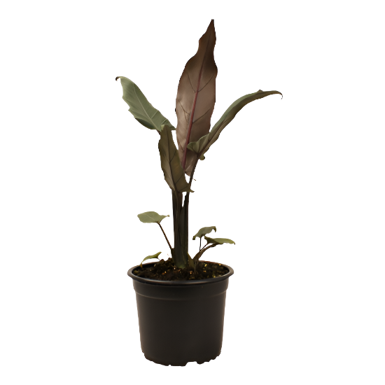 The Alocasia lauterbachiana displays unique colouring with its dark green leaf face and deep purple underside, complemented by its matte black stems. This plant is different from the other Alocasias in the way its stems are far more upright and structured. This plant follows the Alocasia family traits where it will thrive only when kept in its ideal conditions. Less than ideal conditions may result in marks on the leaves or potential leaf loss.