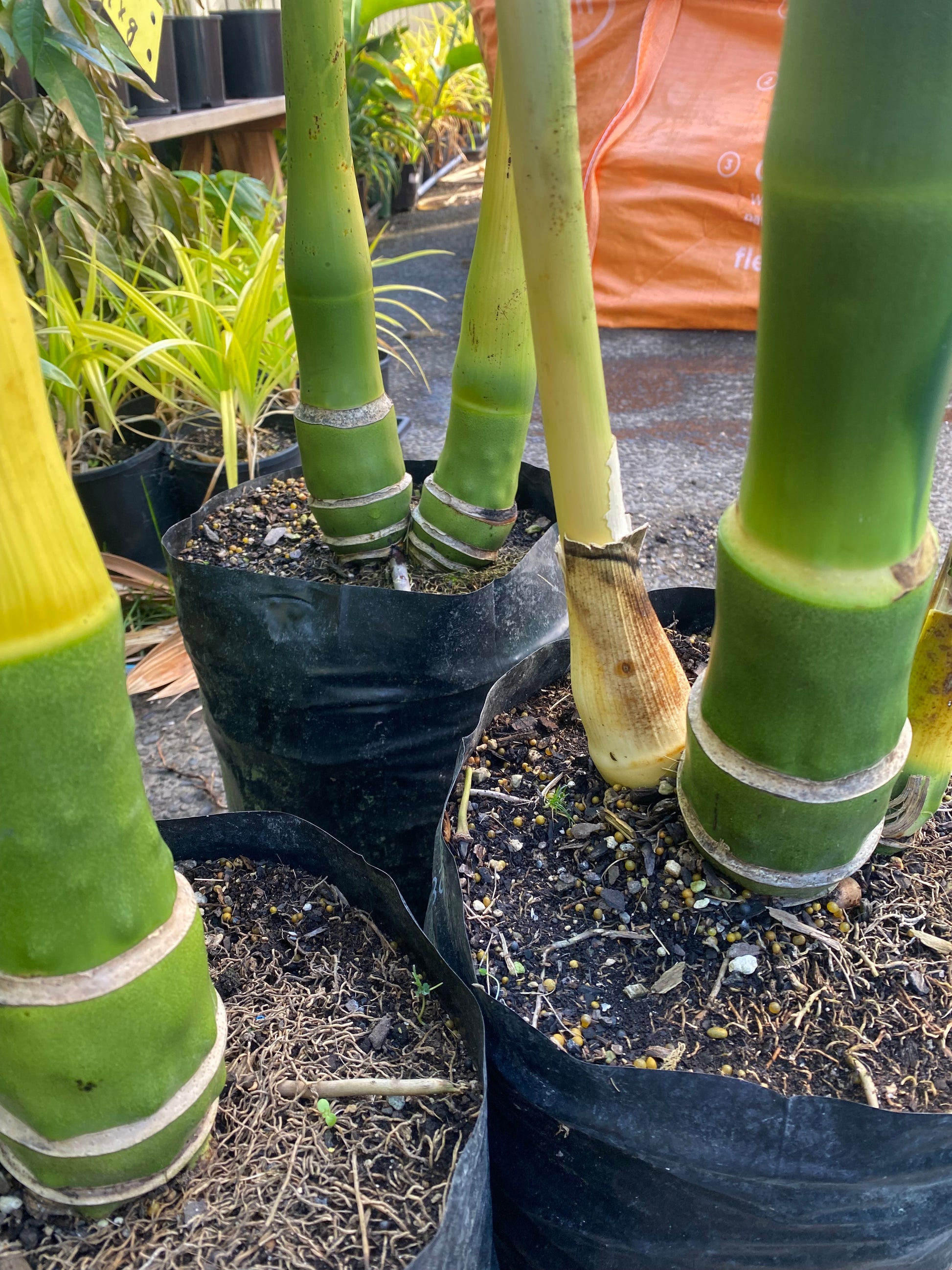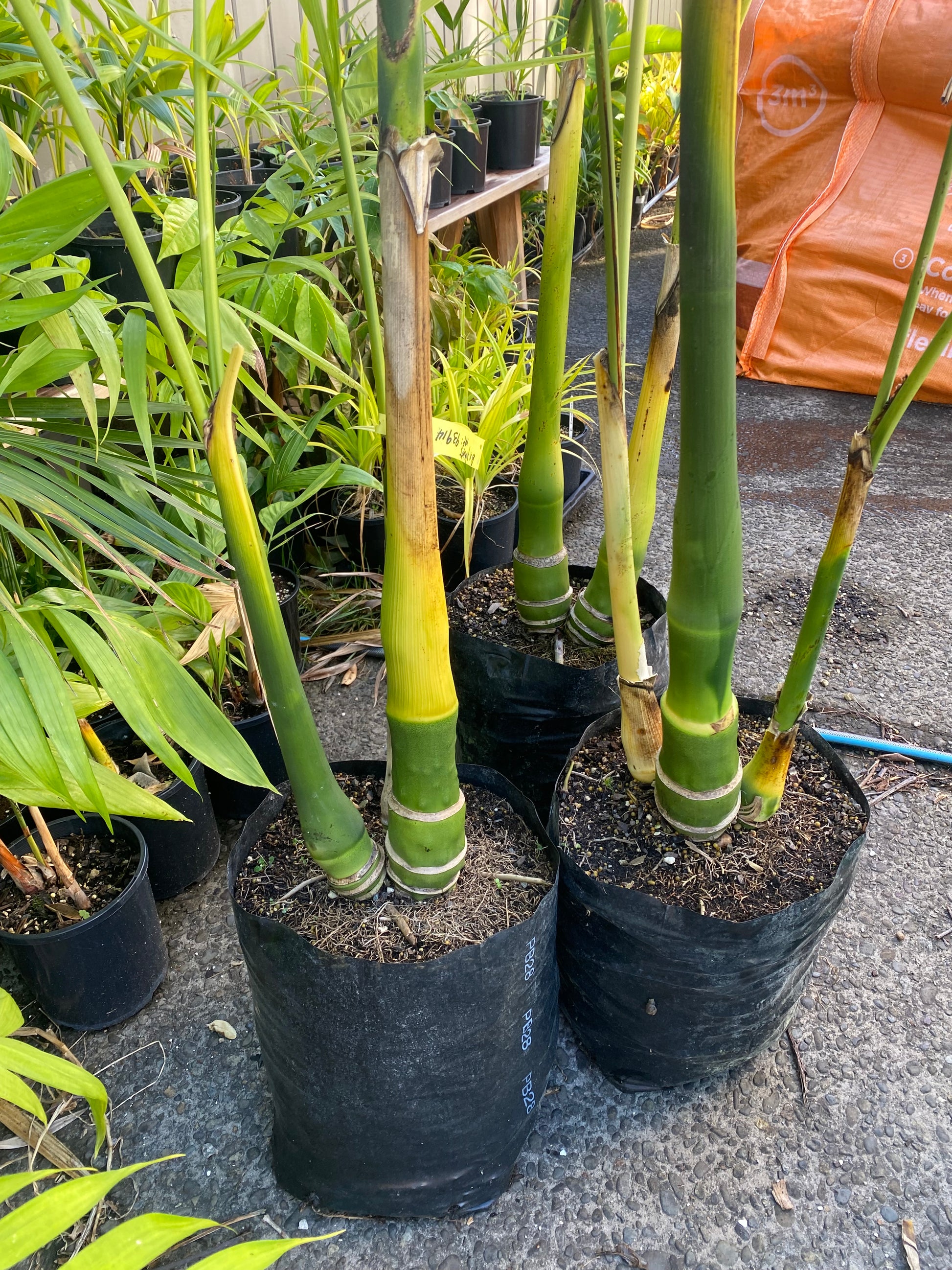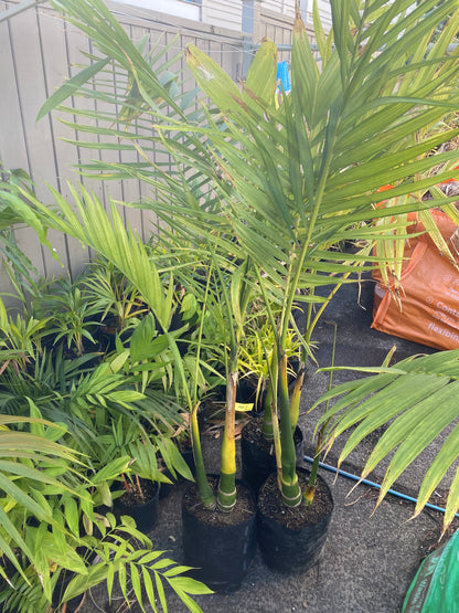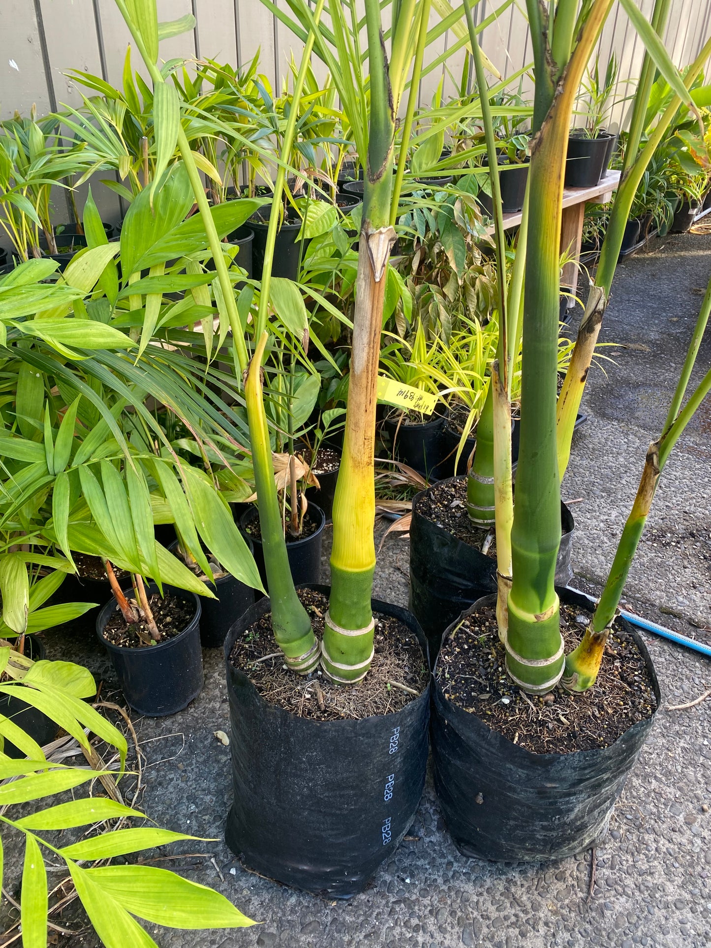 Woodsoniana is one of the largest of the Chamaedorea family, in terms of both its potential height and the diameter of its trunk. It is a solitary palm but looks at its best when multi-planted (this particular batch of palms are all either double or triple-planted), or interspersed under high shade trees if planted outside. Relatively fast growers, nice and hardy and vastly under-used and appreciated in NZ. Get amongst it.