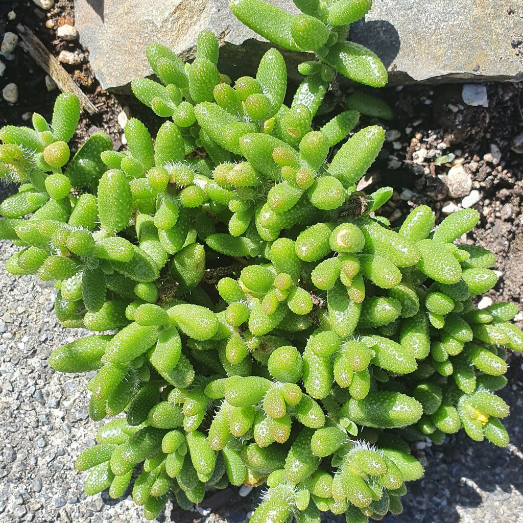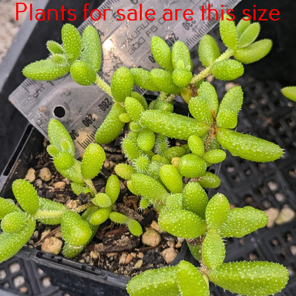Delosperma Echinatum is best known as the ‘Pickle Plant’ or ‘Ice Plant’. As the plant matures you can expect it to reach up to around 45 (20″) tall. The leaves are mostly bright green to dark green with small spots on them! When the plant flowers you can expect white to yellow flowers from spring.