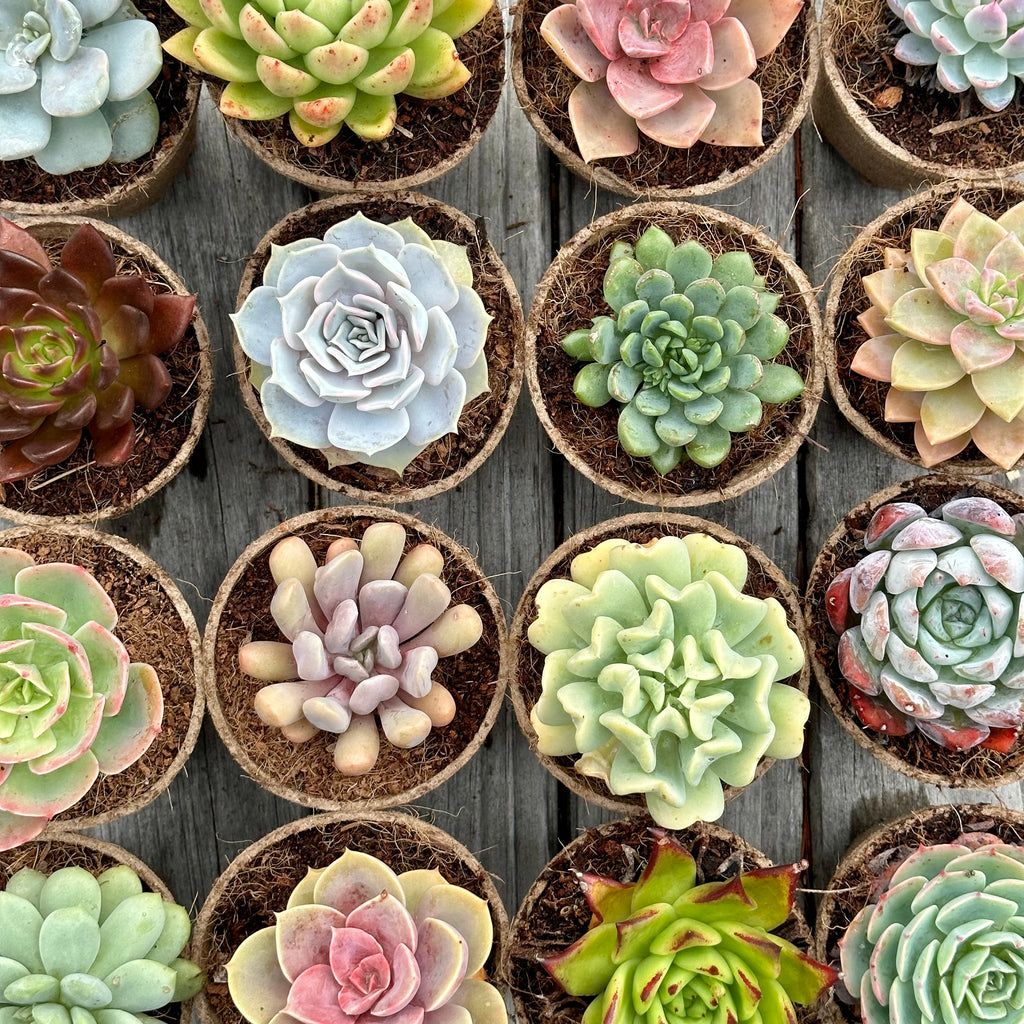 - (2) Mixed Succulents inside 7.5cm x 7.5cm Jiffy Mini Pots.