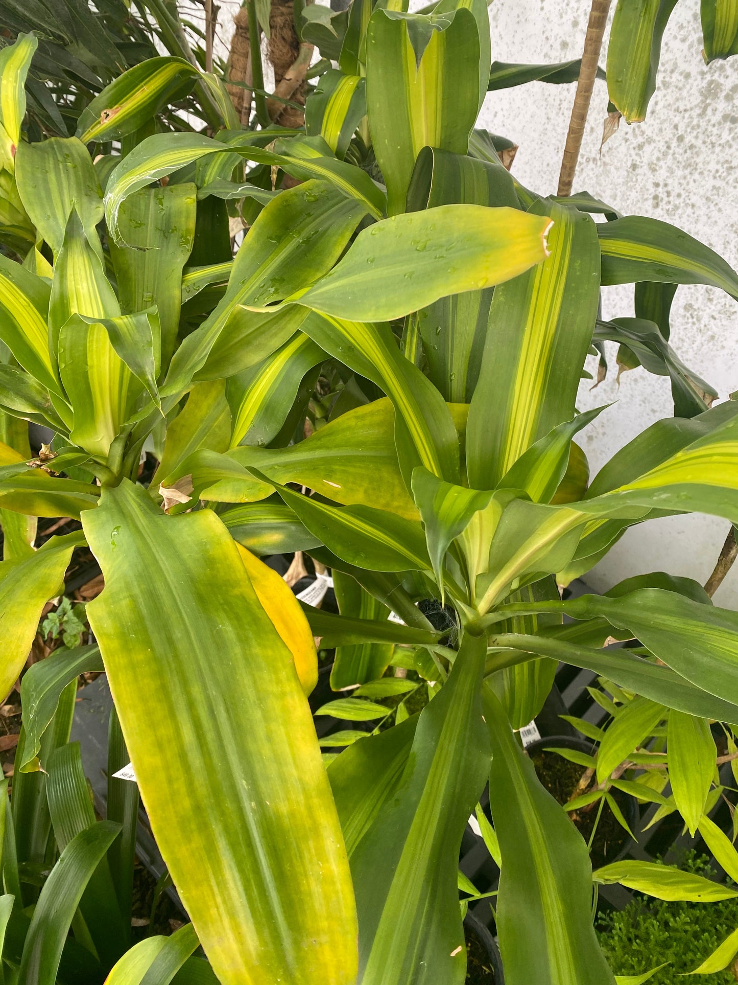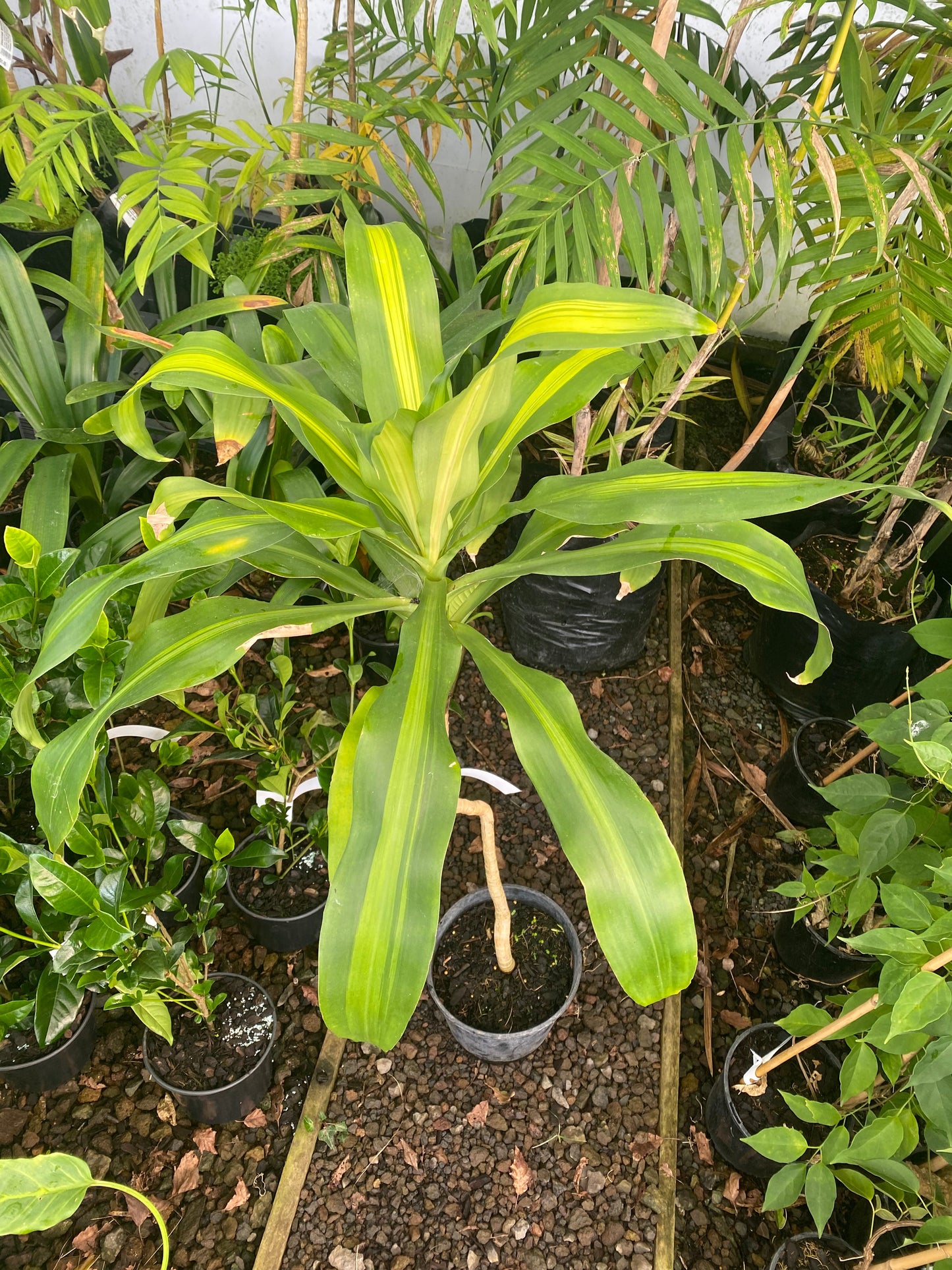 Dracaena fragrans species is native to tropical Africa. Thriving in the warm and humid understory climate of dense forests. It belongs to the Asparagaceae family along with agaves and hostas. A brilliant plant for instant tropical impact.