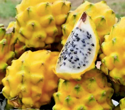 Hylocereus megalanthus is the highly sought-after self-pollinating Yellow Dragon Fruit or Pitaya variety (yellow skin - white flesh) that many claim is the best eating of all the varieties. Not just sweeter and juicier than others, but this nutrient-packed fruit offers a lovely floral taste not found in other varieties. Quite rare in NZ.