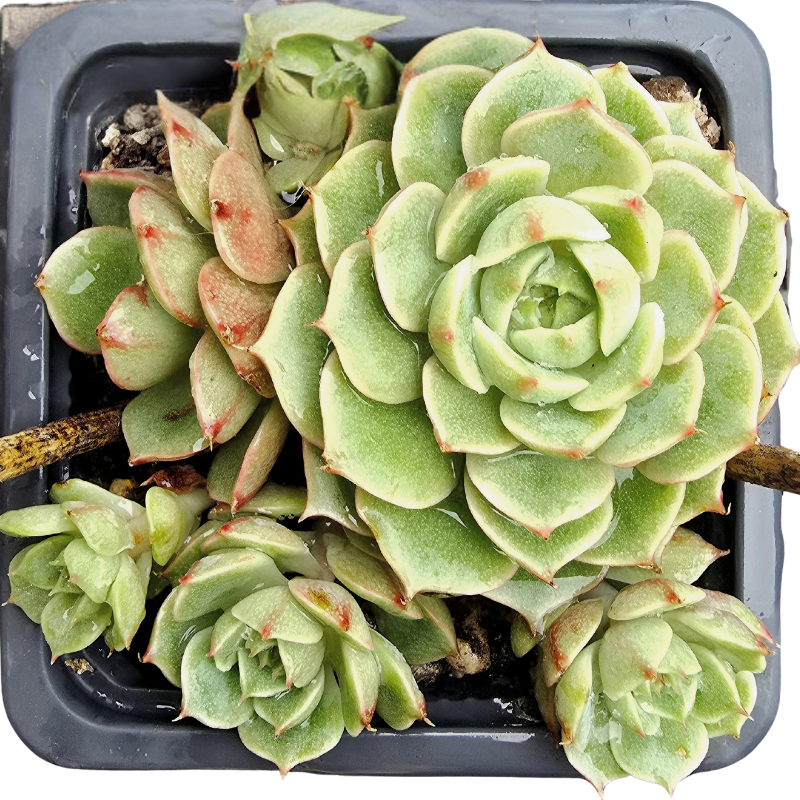 A beautiful Echeveria ‘Ben Badis’ with multiple offsets, forming a compact and well-balanced cluster.