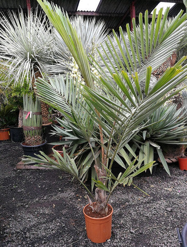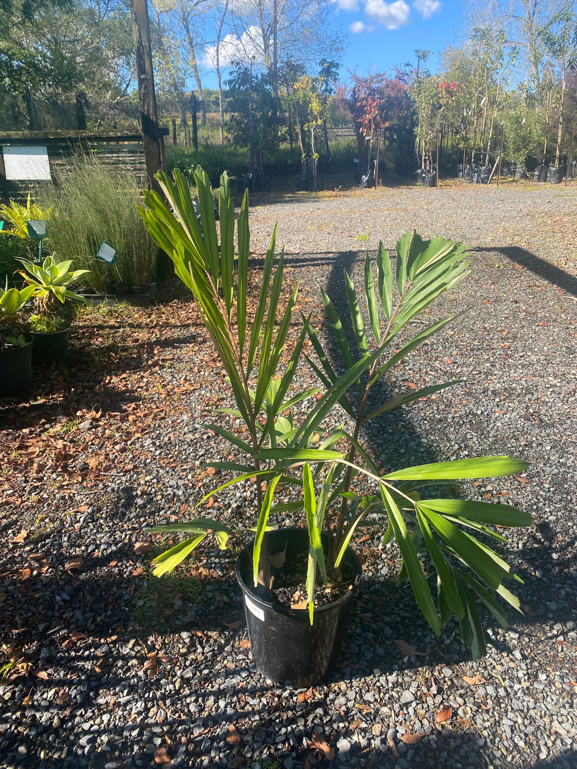 Evergreen, this palm prefers partial shade and will take quite a few degrees of frost. One of the best palms to display the tropical look. it is still a palm which is quite hard to come by and quite sought-after.