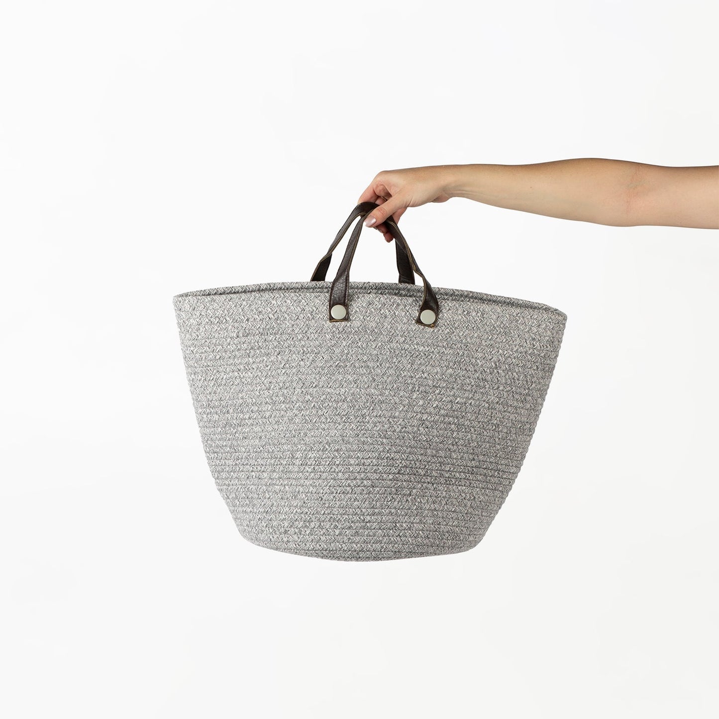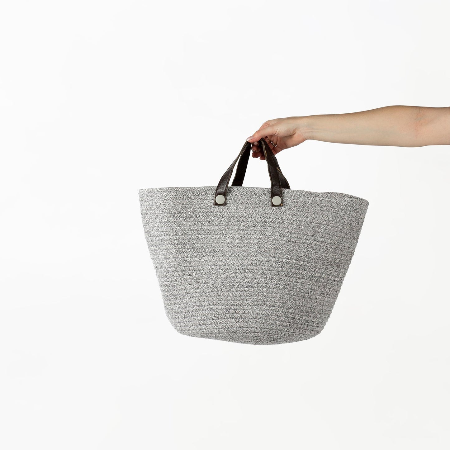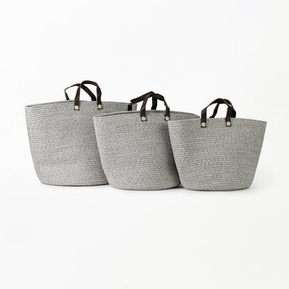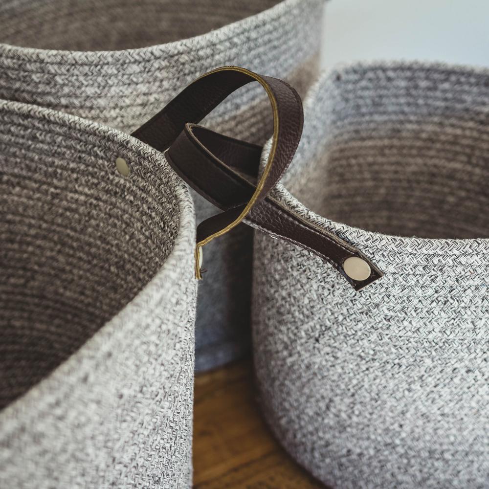 Two-Striped Grey Basket with Leather Handles