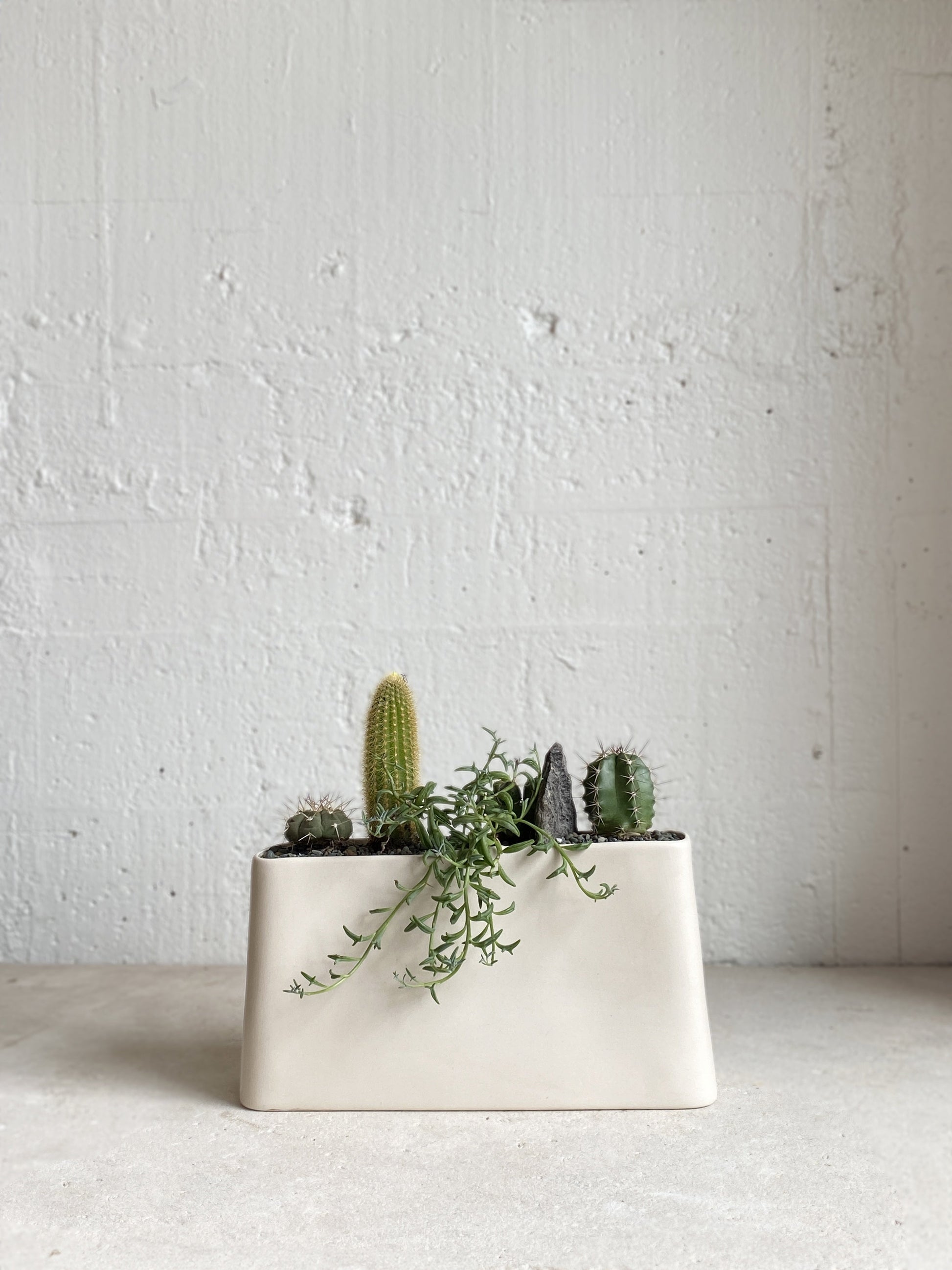 The Haan Planter is well suited to every living setting with its organic form and natural palette. Internally glazed planter perfect for plant and floral arrangements or used as a magazine holder.