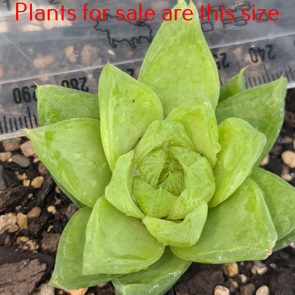 Haworthia cuspidata is a small succulent that forms rosettes of bright green leaves marked with darker green translucent areas near...