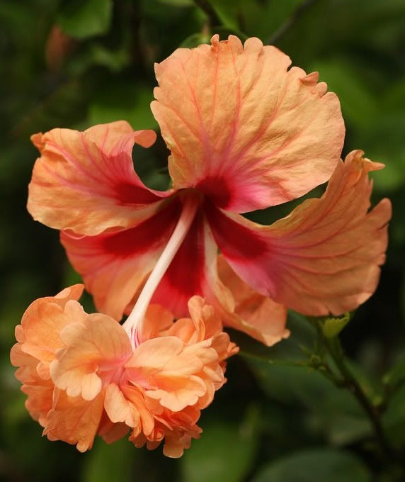 This lovely Hibiscus produces unusual, apricot flowers in summer and autumn that have a lovely red centre.