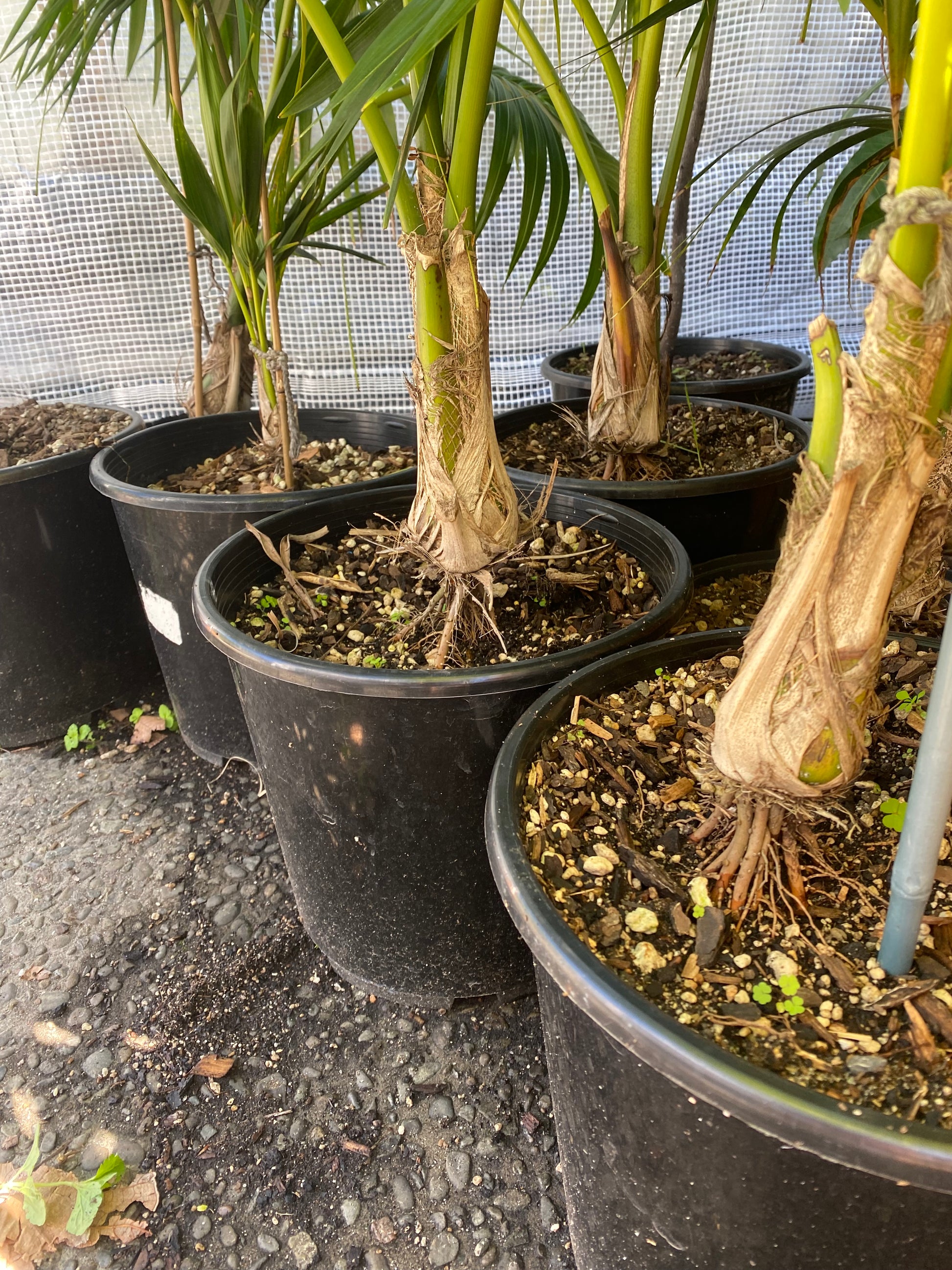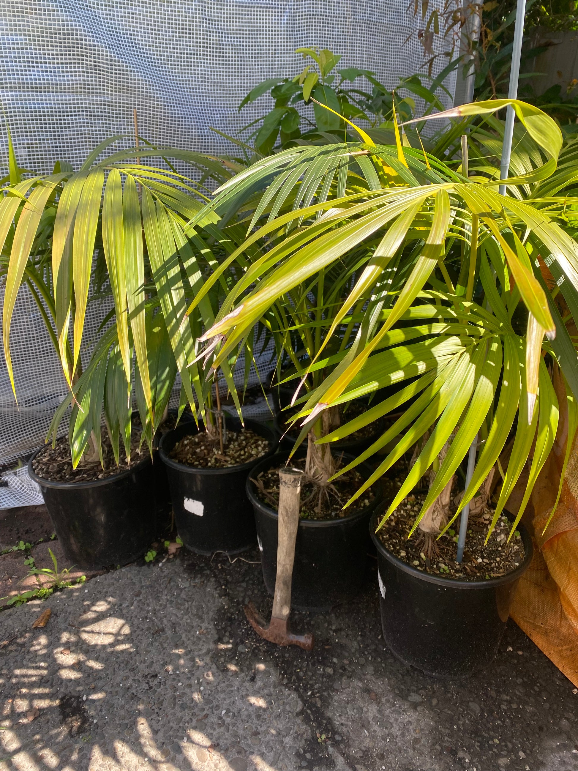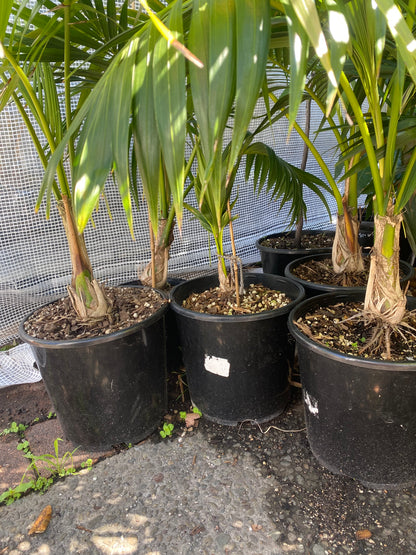 These are outdoor grown Kentias, so they're sun, wind and cold hardy - and ready to plant out. Take note of the price of these palms in the large retail Garden Centres, they're not cheap.