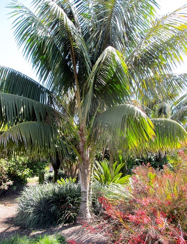 Howea forsteriana, the Kentia palm. Is a beautiful palm with a slender form and arching, feathery fronds. Hardy indoor plant as it is tolerant of dark and shady positions, Grow outdoors in part shade to full sun. Fertilise during the growing season.