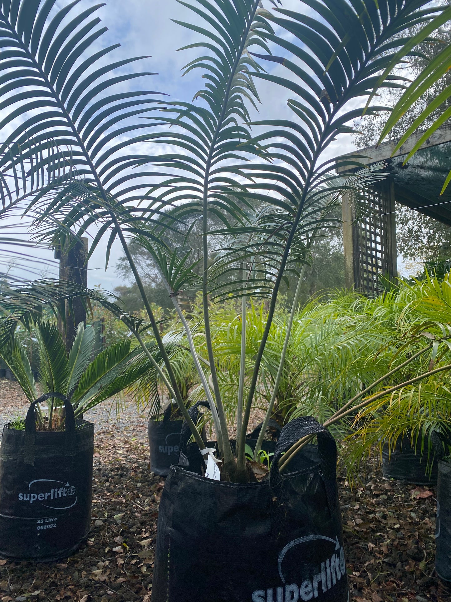 Lepidozamia peroffskyana is one of the tallest cycads, growing to seven metres, with arching dark green glossy leaves that look like palm fronds. New leaves are soft, brown and hairy as they emerge but turn green and glossy and flatten out as the leaves harden.