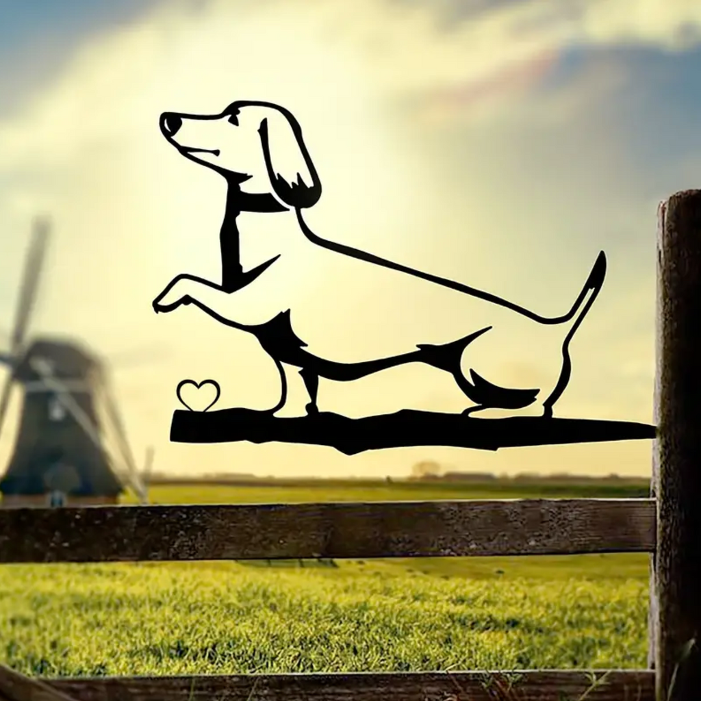A great metal art of a Dachshund (sausage dog) offering his loving paw. Secure to a post in your garden or home.