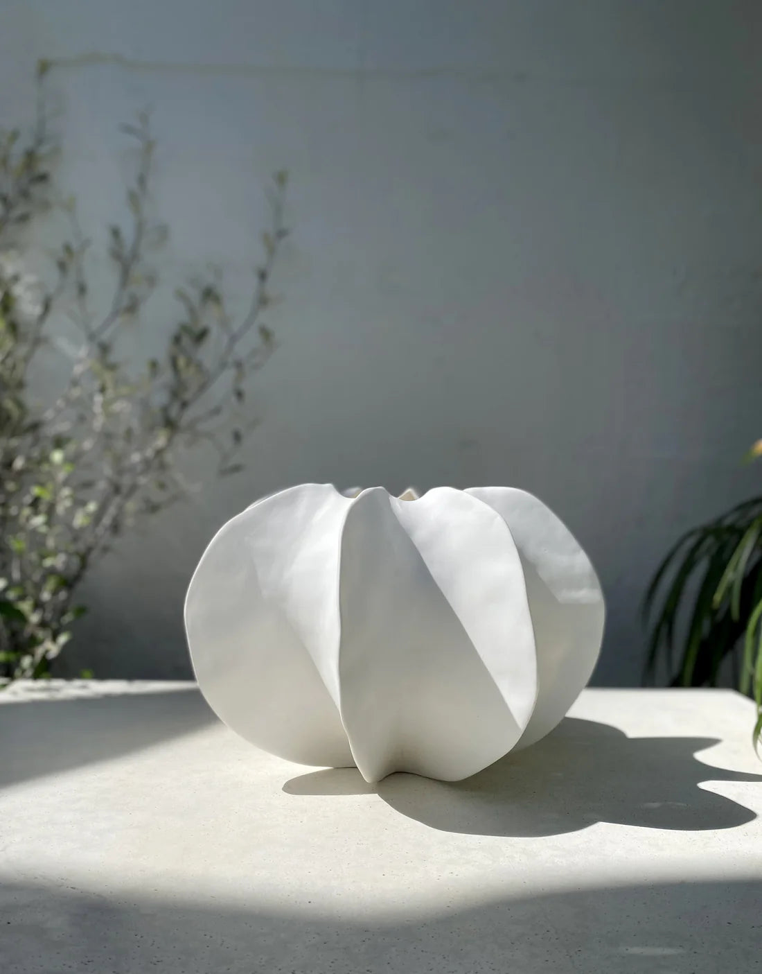 An absolutely stunning piece of fine bone china, made in the Philippines by an artisan family company. Beautifully delicate looking, reminiscent of a sea urchin, this vase looks amazing on its own, or as a vessel for fresh cut flowers.