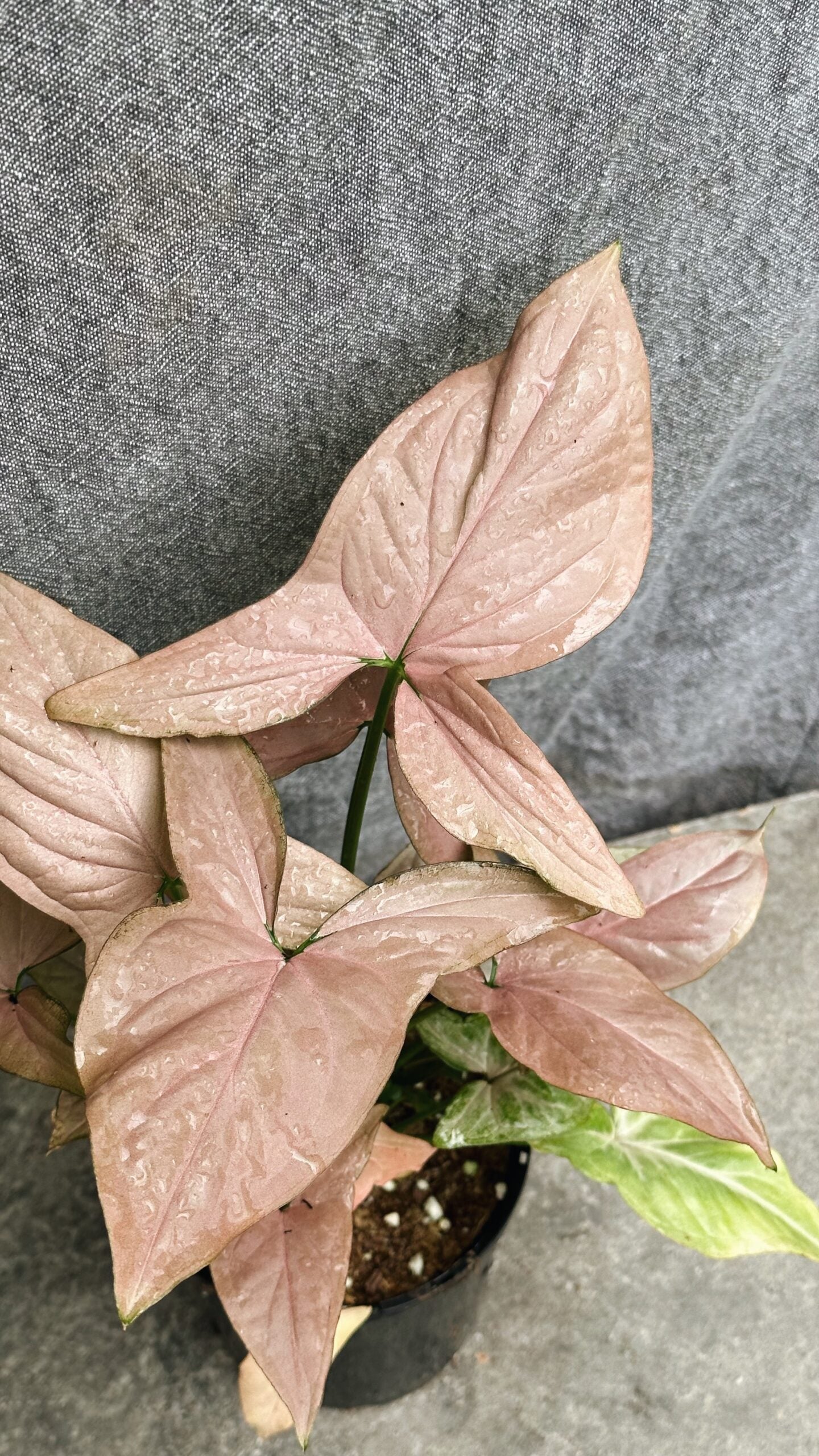 Description:Syngonium Pink Arrow is a fast growing climbing plant.