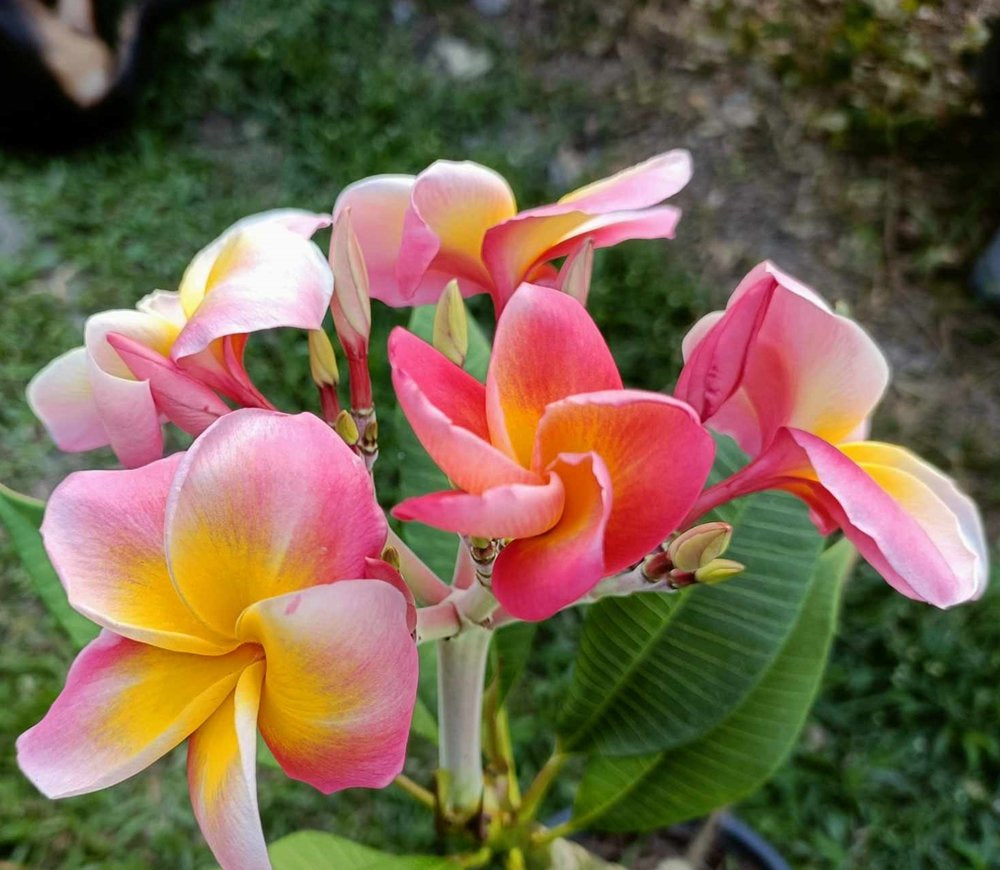 These beautiful and fragrant tropical Frangipani plants (Plumeria sp.) referred to as 'Mixed Thai Hybrids' are grown from seed (as...