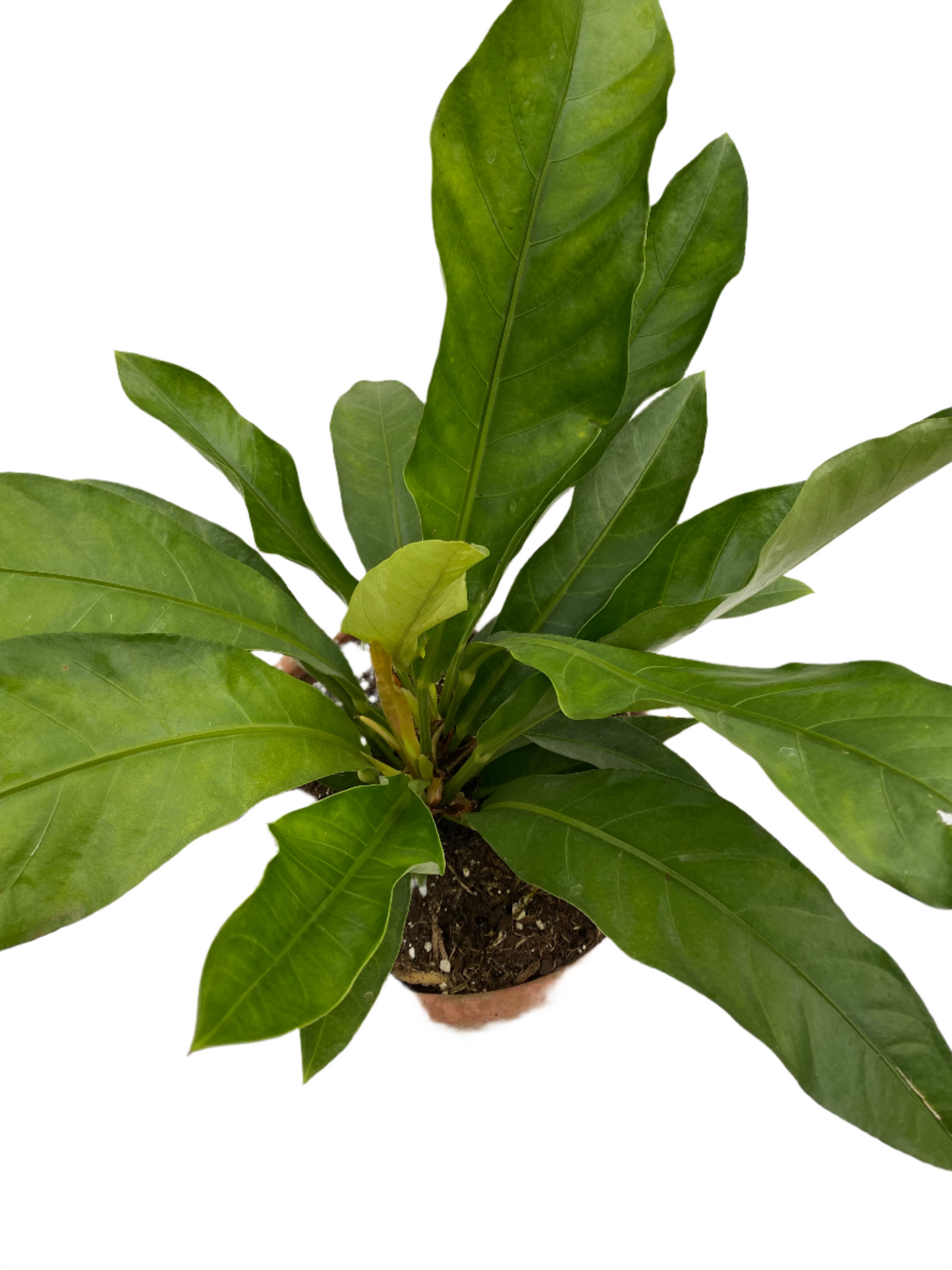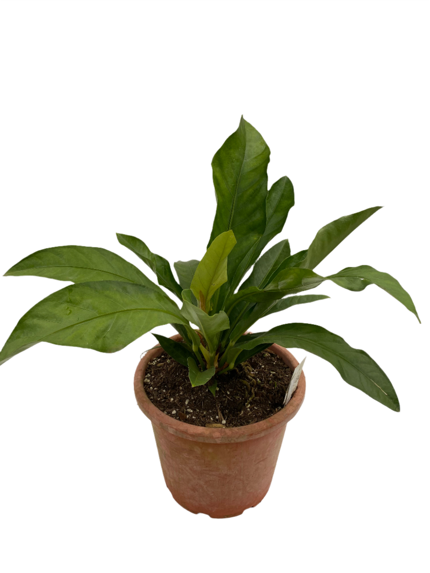 Anthurium plowmanii, is one of a number of Anthuriums known as Bird's Nest Anthurium (along with A. Hookeri, A. crassinervium and others). A wonderful, drought tolerant plant with long, green leaves with slightly rippled or wavy edges and prominent 'veins' so to speak. A fantastic pot plant or feature plant as well as an under-story filler in between larger trees and shrubs.