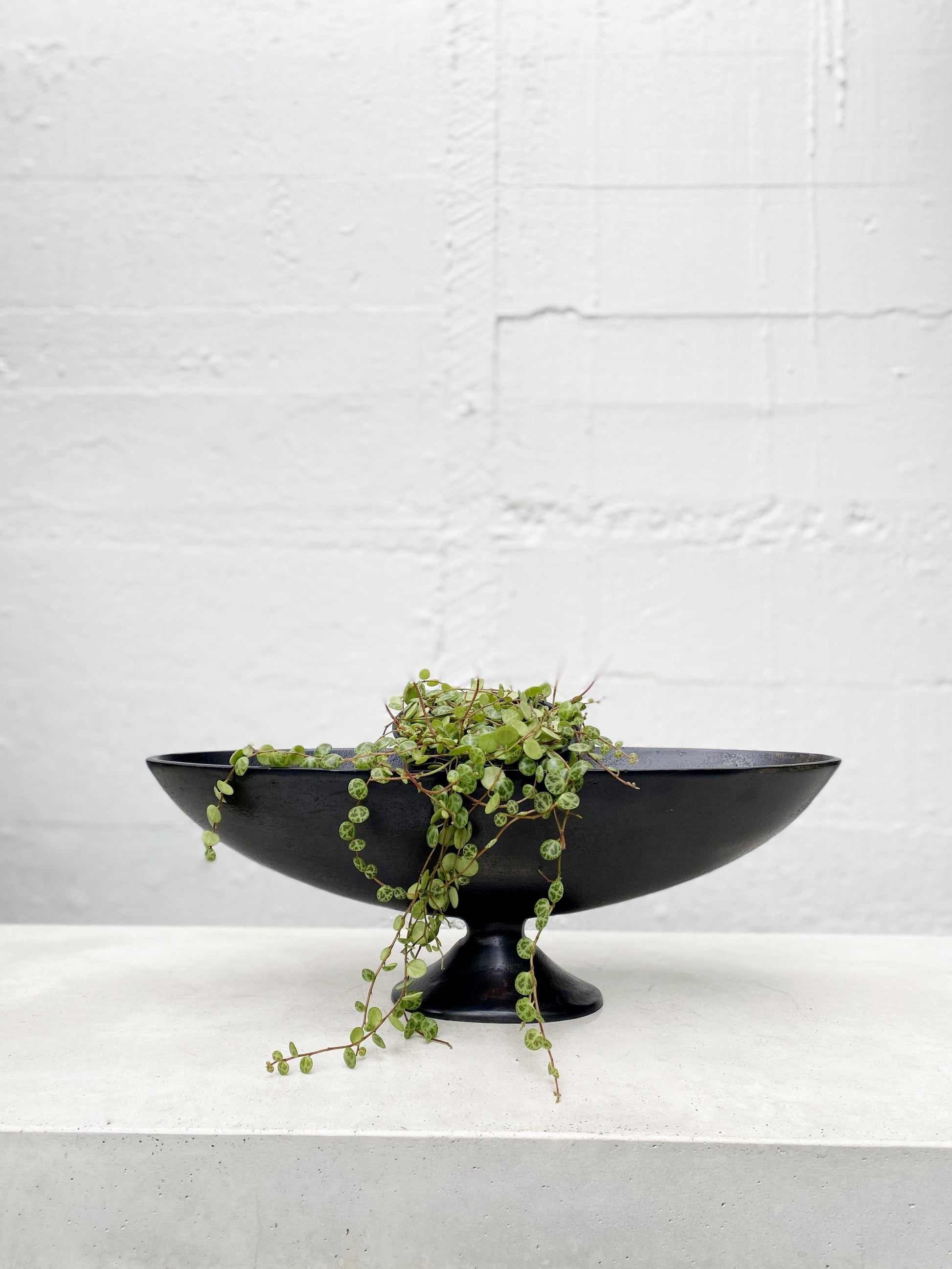 Foy is the answer when you are looking for a unique and decorative bowl. The size and oval shape is ideal as a refined centrepiece on your dinner table or decorative item on a sideboard. The aluminium has been given a dark brass finish which adds a subtle structure to the surface