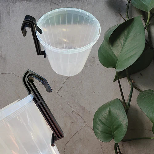 Hanging plant pot clips are great for displaying your plants. They are durable and can be securely clipped onto a nursery pot. Ideal for using in a greenhouse and plant cabinets to save space or attach to a trellis grid in your home to create a stunning display of plants.