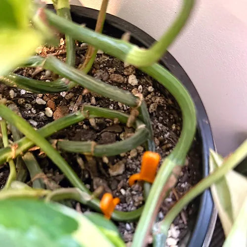 Made of sturdy plastic with a little bit of flexibility. The pull tab sticks up just above the soil to easily grab to place into the soil preventing damage to the plant stems and once the stem has rooted simply slide the pin out, ready to re-use.
