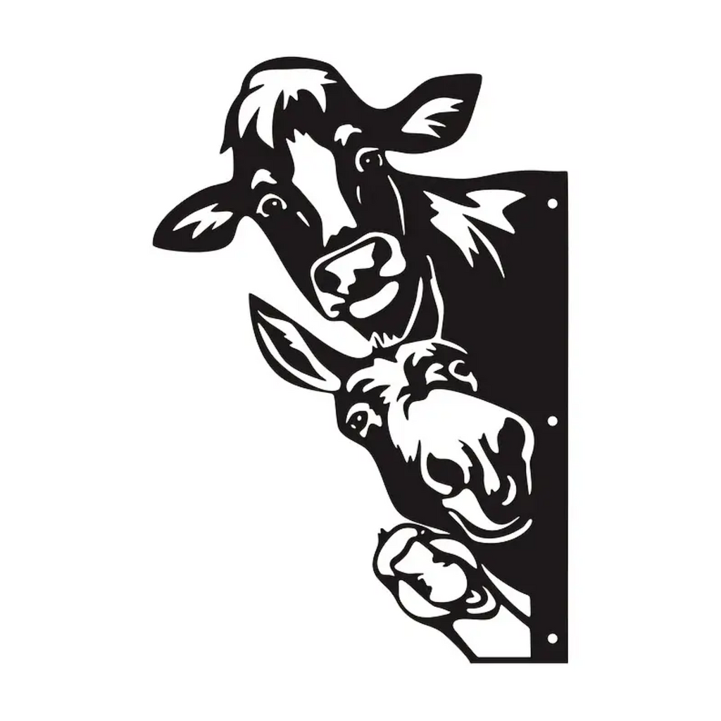 Three peeping animals with this metal art, including the cow, donkey, and duck. Secure to a post in your garden or home.