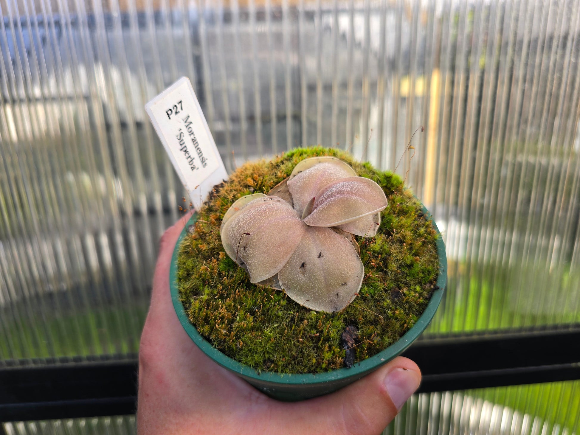 Pinguicula moranensis is a pure species native to El Salvador, Guatemala, Honduras and Mexico. This species forms summer rosettes up to 10cm in diameter. Flowers are pink with a white throat.