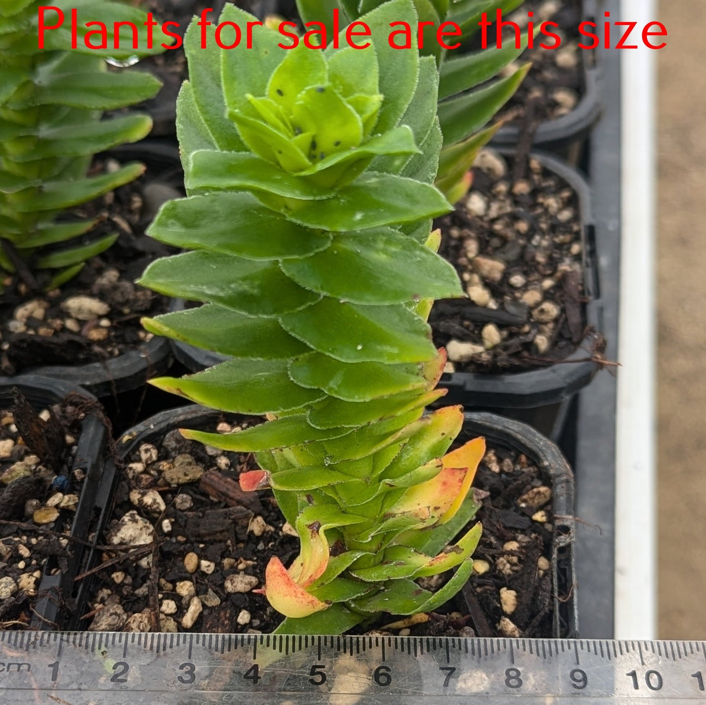 Crassula Coccinea is commonly known as the ‘Red Crassula’. As the plant matures you can expect the plant to reach up to around 40 cm (16″) tall. The plants main feature are the green to light green leaves that grow densely upwards. When the plant produces flowers you can expect it to produce red flowers.