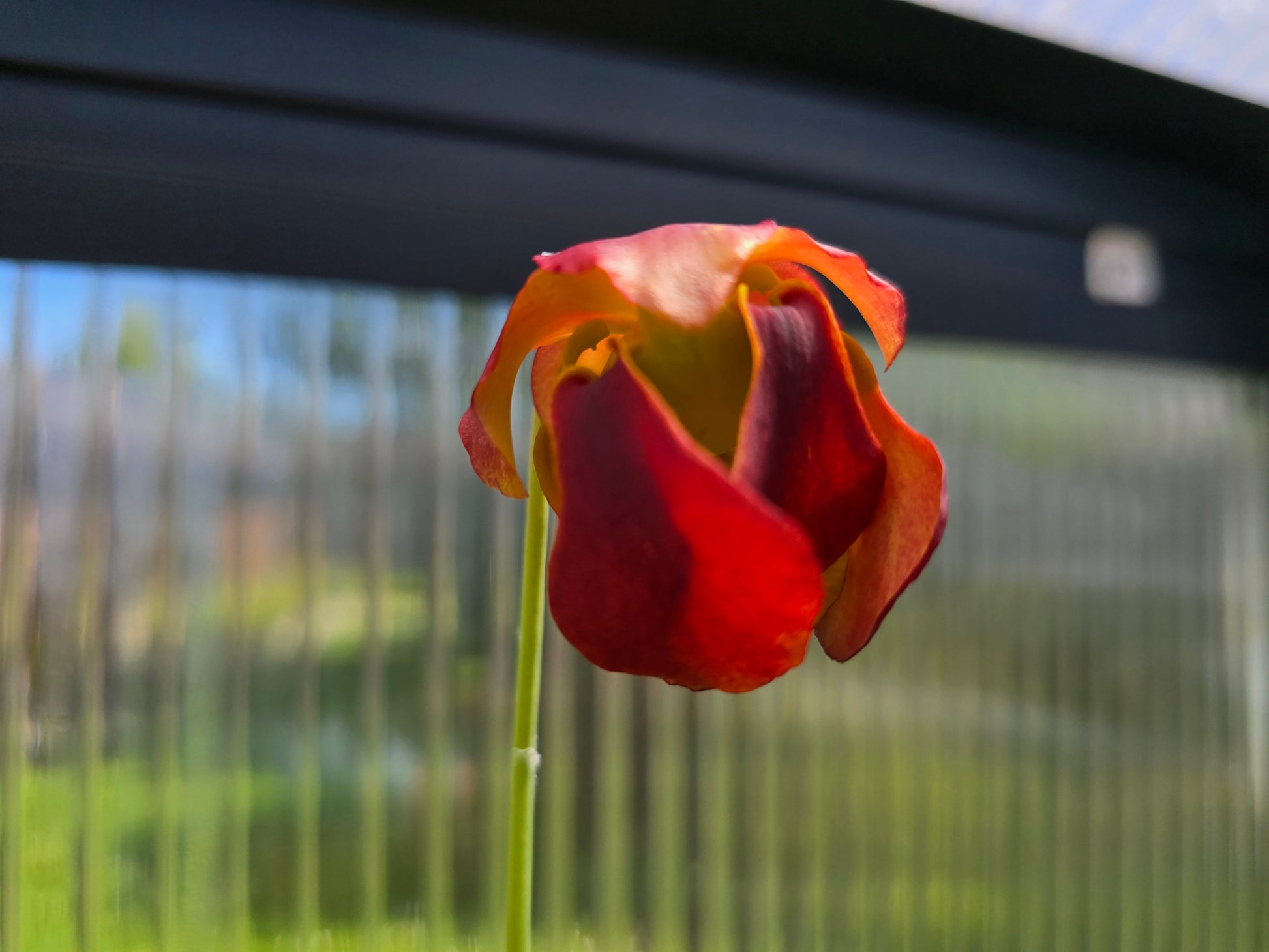 The Sarracenia psittacina, commonly referred to as the Parrot Pitcher Plant, is a highly distinctive species. Its pitchers protrude outward and have a distinctive "hood" shape. This plant is uniquely adapted to its natural habitat, where it is seasonally submerged in water and is capable of capturing aquatic prey. The deep purple-red colouring of the plant is adorned with numerous white light-windows, giving its large, spherical hoods a striking appearance.
