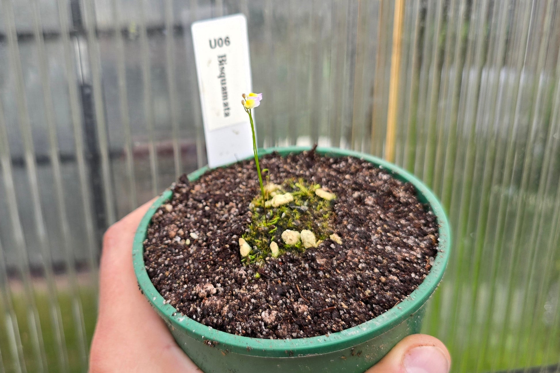 Utricularia bisquamata is a prevalent and prolific plant found in Southern Africa. It is a frequent companion in carnivorous plant collections around the world due to its ease of cultivation and natural abundance. It thrives in moist soil, reflecting its natural habitat.